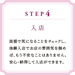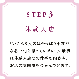 お好きな日時と働きたい時間でまずはお店を体験して下さい。